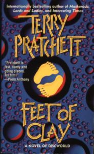 It's murder in Discworld! -- which ordinarily is no big deal. But what bothers Watch Commander Sir Sam Vimes is that the unusual deaths of three elderly Ankh-Morporkians do not bear the clean, efficient marks of the Assassins' Guild. An apparent lack of any motive is also quite troubling. All Vimes has are some tracks of white clay and more of those bothersome "clue" things that only serve to muck up an investigation. The anger of a fearful populace is already being dangerously channeled toward the city's small community of golems -- the mindless, absurdly industrious creatures of baked clay who can occasionally be found toiling in the city's factories. And certain highly placed personages are using the unrest as an excuse to resurrect a monarchy -- which would be bad enough even if the "king" they were grooming wasn't as empty-headed as your typical animated pottery.