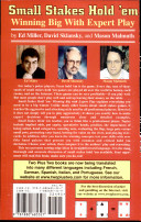 Small Stakes Hold ’em: Winning Big with Expert Play explains everything you need to be a big winner. Unlike many other books about small stakes games, it teaches the aggressive and attacking style used by all professional players. However, it does not simply tell you to play aggressively; it shows you exactly how to make expert decisions through numerous clear and detailed examples.